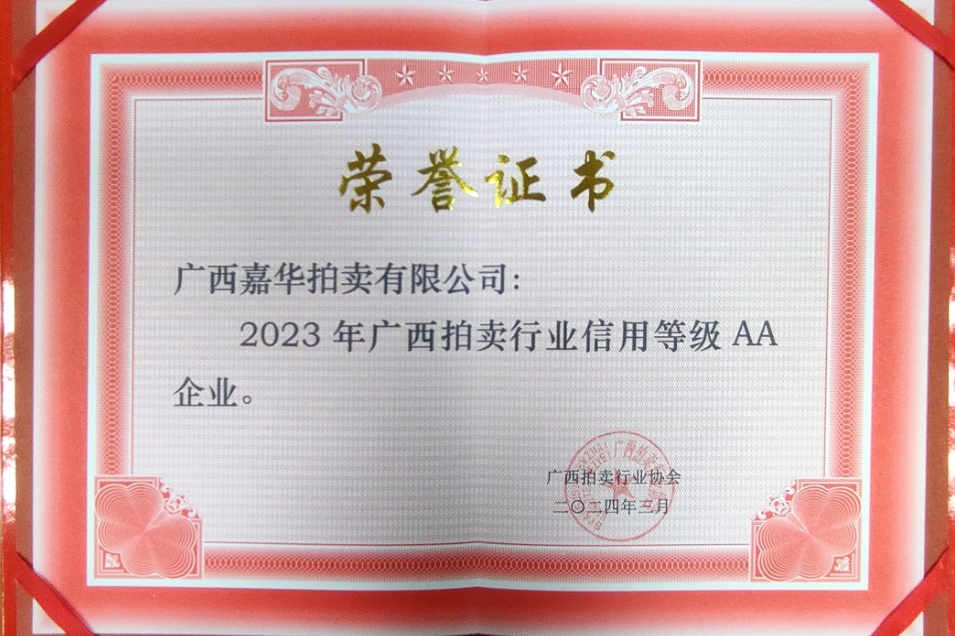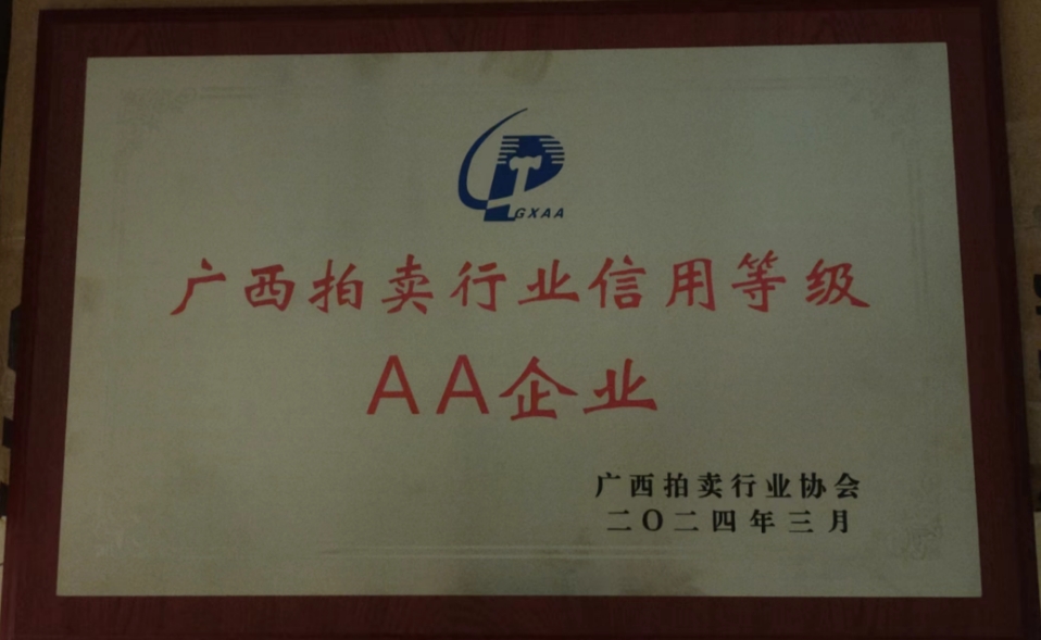 廣西拍賣行業信用等級AA企業 -